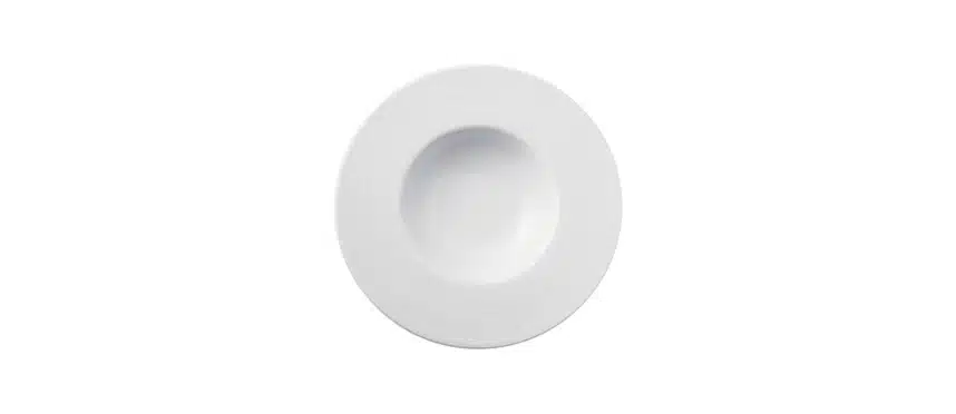 Piatto fondo ideale per servire piatti da nouvelle cuisine, le cui regole prevedono che i prodotti debbano essere freschissimi e di qualità, i tempi di cottura brevi e precisi, le salse leggere e l’estetica della presentazione altrettanto importante rispetto al sapore e alla leggerezza dei cibi.
